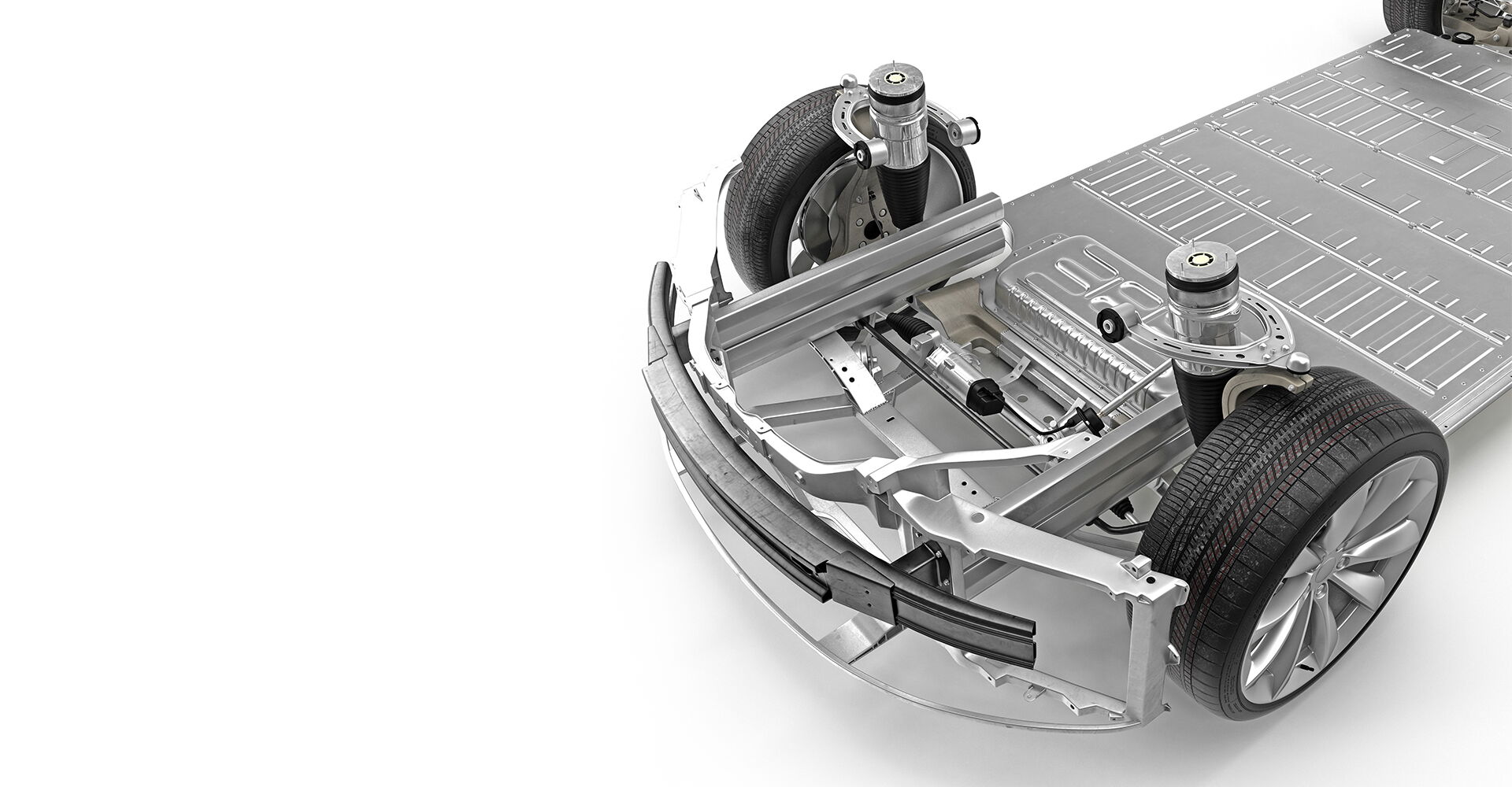 Irrtümlicherweise wir das Chassis oft mit einem einfachen, festen Stahlrahmen in Verbindung gebracht. Im Laufe der Entwicklung hat sich diese tragende Einheit stark weiterentwickelt. Neben dem Einzug des Leichtbaus bei steigenden Anforderungen an die Steifigkeit werden auch immer mehr systemrelevante Elemente mit dem Chassis verbunden: Auch die Batterien von E-Fahrzeugen werden mittlerweile komplett in die Chassis-Architektur integriert.