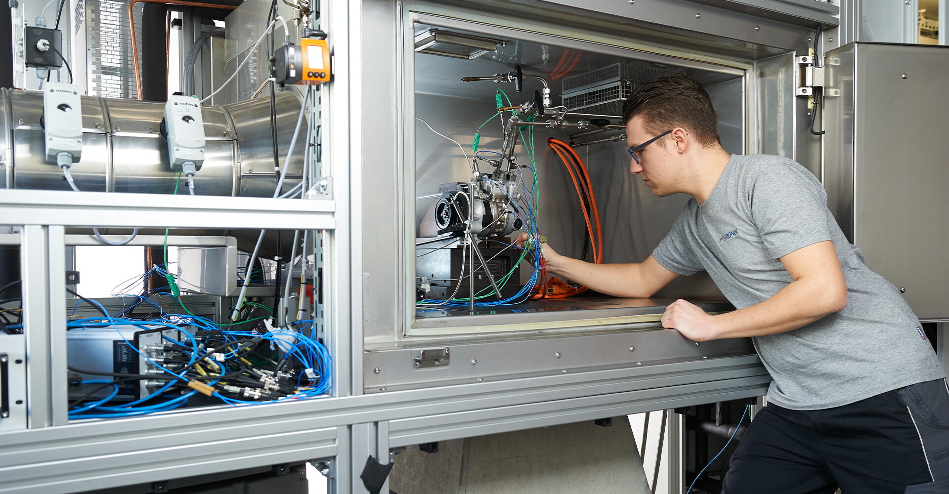 Viele führende Kältemittelverdichterhersteller setzen auf Kompressorprüfstände von IPEtec. IPEtec entwickelt kompakte und integrierte Prüfstandslösungen, um zuverlässige und vergleichbare Testergebnisse sicherzustellen. Mit den Prüfständen kann eine sehr große Anzahl von Prüfaufgaben und Vorschriften unter den verschiedensten Lastbedingungen und Arbeitsschwerpunkten abgedeckt werden. Durch die integrierte Heaterbox ist es möglich, den Kompressor auch bei verschiedenen Umgebungstemperaturen in einem Standard-Temperaturbereich von –30 bis 120°C zu validieren. Bei den Testverfahren kann auch die wichtige Kenngröße der Überhitzung (Superheat) eingestellt und geregelt werden. Zur Steuerung von Datenerfassung und Prüfabläufen wird die benutzerfreundliche Messsoftware IPEmotion eingesetzt. In der Basiskonfiguration ist eine Vielzahl von Prüfprogrammen nach dem VDA Standard schon fertig eingerichtet. Mit der grafischen Oberfläche von IPEmotion ist die Konfiguration einer kundenspezifischen Prüfroutine ganz einfach.