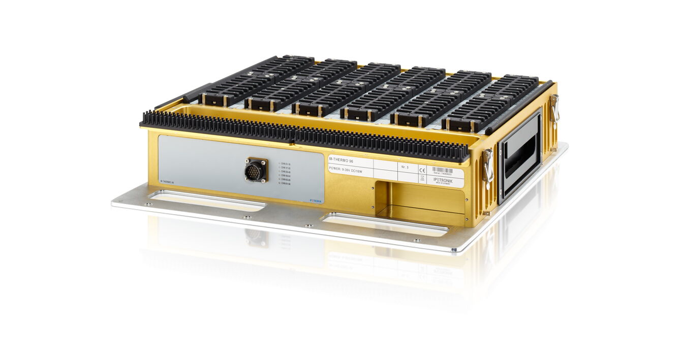 Unser Temperatur-Messmodul-"Flaggschiff" M-THERMO 96 besitzt insgesamt 96 universelle Thermoelement-Eingänge vom Typ E, J, K, N, R, S und T misst mit höchster Präzision, auch bei Umgebungstemperaturen von -40 °C bis +85 °C. Für hervorragende Ergebnisse – auch bei schneller Änderung der Umgebungstemperatur – sorgt die Kaltstellenkompensation, die bei jedem Kanal vorhanden ist. Patentierte Diagnosefunktionen bieten ein Höchstmaß an Zuverlässigkeit und verhindern den Verlust von Messdaten.